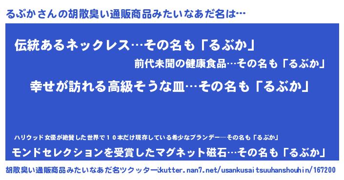 るぶかさんの胡散臭い通販商品みたいなあだ名をツクッター!