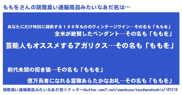 | 意味不明あだ名 | 『ニラ科ももを属』『自称ももを』 |