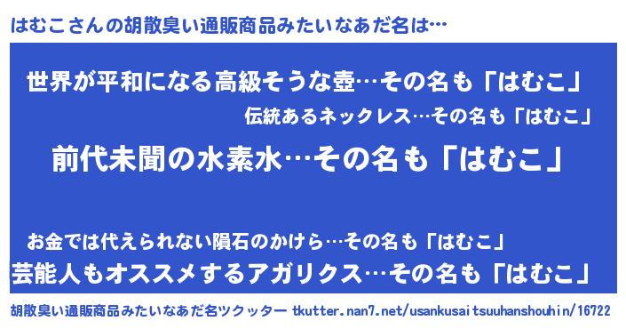 | 意味不明あだ名 | 『永久保存はむこ』『はむこフォーエバー』 |