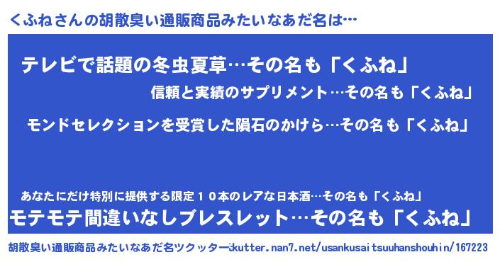 | ヘコむあだ名 | 『くふもー』『くふっ子』『レバニラ』 |