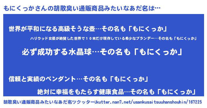 | 男性向けラノベタイトル風あだ名 | 『もにくっかの憂鬱』 |