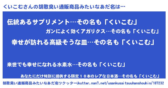 | ヘコむあだ名 | 『つくし』『くいを』『くいにゅー』 |