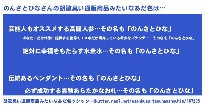 | 意味不明あだ名 | 『永久保存のんさとひな』 |