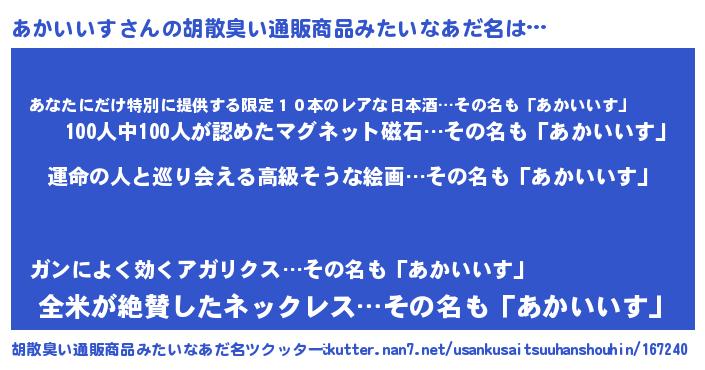 | ファンタジー風あだ名 | 『エターナルアカイイスー』 |