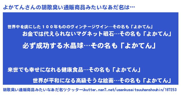 よかてんさんの胡散臭い通販商品みたいなあだ名をツクッター!