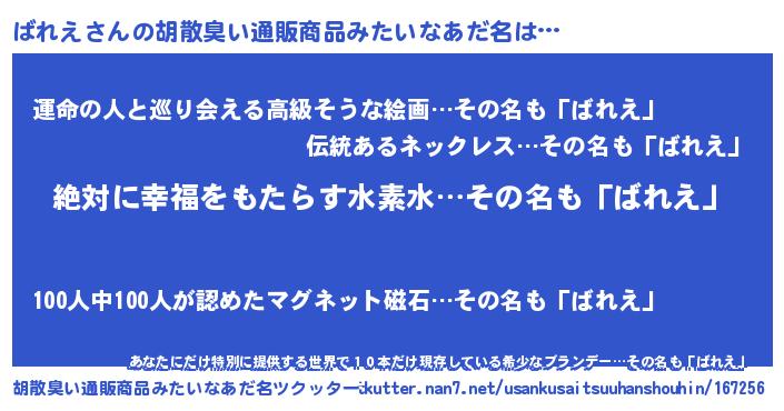 | ヘコむあだ名 | 『ばれえ(震え声)』『レバニラ』 |