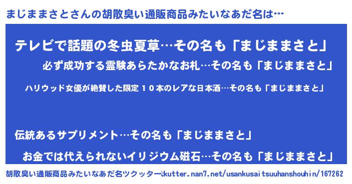 | 意味不明あだ名 | 『住所不定無職まじままさと(14歳)』 |
