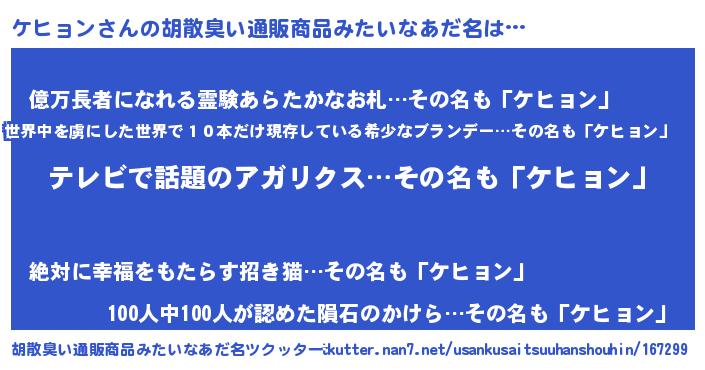 | ヘコむあだ名 | 『ケヒもー』『ケヒョン(苦笑)』 |