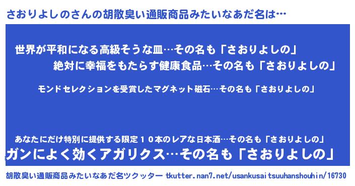 | ヒーロー風カッコイイあだ名 | 『慈愛の使者さおりよしの』 |