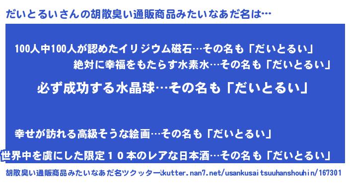 | ヘコむあだ名 | 『だいにゅー』『だいとるい(爆)』 |