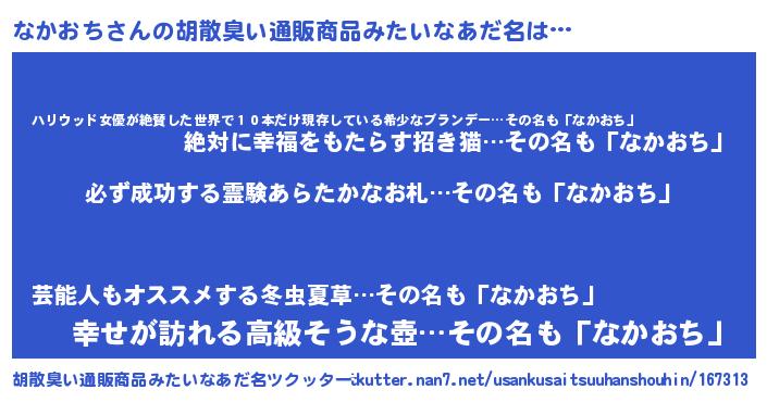 | 伝説のあだ名 | 『伝説のスナイパーなかおち』 |