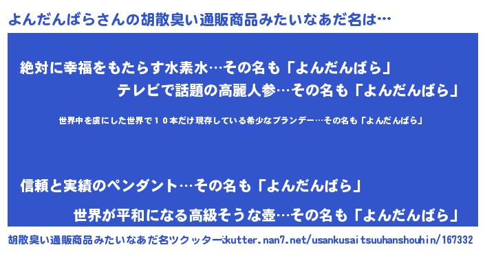| 伝説のあだ名 | 『古より伝わる勇者よんだんばら』 |