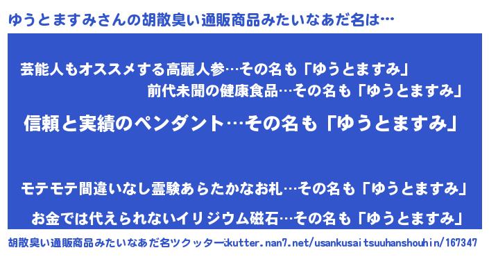 | ヘコむあだ名 | 『ゆうぷりん』『ゆうとますみ(笑)』 |