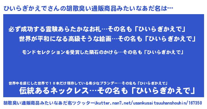 | 欧米人風あだ名 | 『ひいらぎかえで・ステッグマイヤー』 |