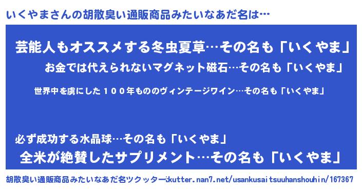 | 意味不明あだ名 | 『住所不定無職いくやま(9歳)』 |