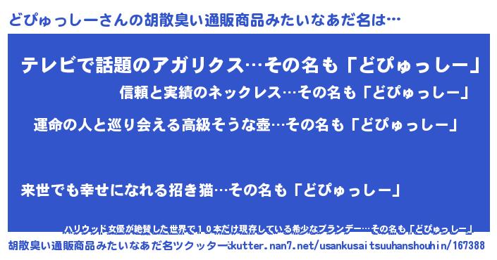 | ヘコむあだ名 | 『レバニラ』『どぴっ子』『どぴにー』 |