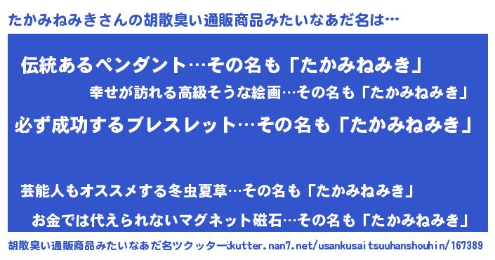 | 意味不明あだ名 | 『ペロリンたかみねみき』 |