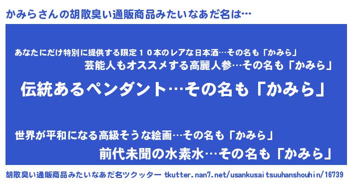 | 意味不明あだ名 | 『とにかく怪しいかみら』『自称かみら』 |