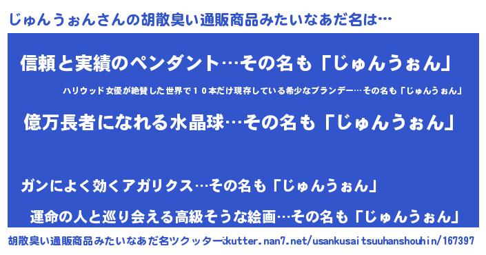 | 男性向けラノベタイトル風あだ名 | 『ジュンウォンアートオンライン』 |