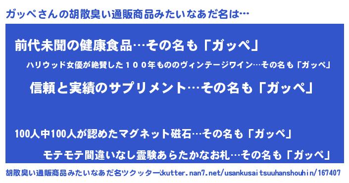| ヘコむあだ名 | 『ガッを』『ガッペ(苦笑)』 |