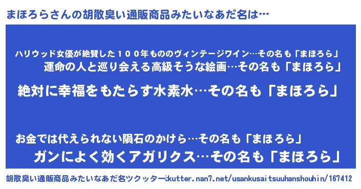 | ヘコむあだ名 | 『まほろら(震え声)』『つくし』 |