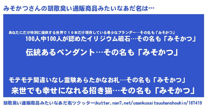 | ポケモン風あだ名 | 『ミソキング』『ヒミソカツ』 |