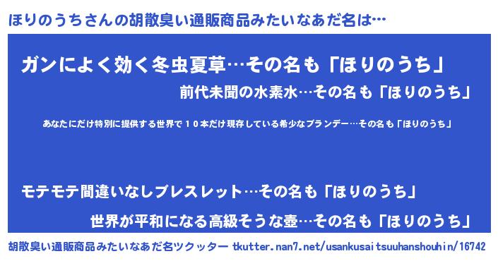 | ヘコむあだ名 | 『レバニラ』『ほりのうち(震え声)』 |