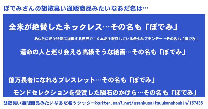| 意味不明あだ名 | 『ぼでみフォーエバー』 |
