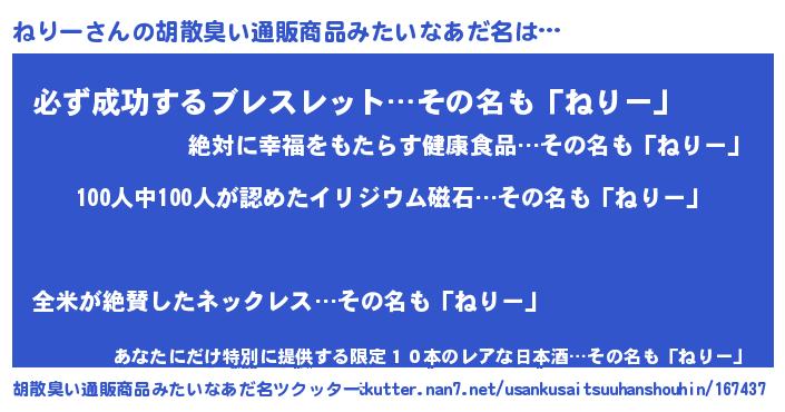 | ヘコむあだ名 | 『ねりもー』『ねりー(小並感)』 |
