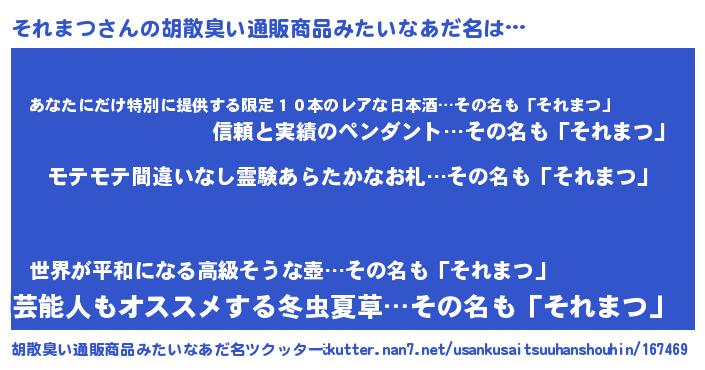 | 意味不明あだ名 | 『ペロリンそれまつ』『自称それまつ』 |