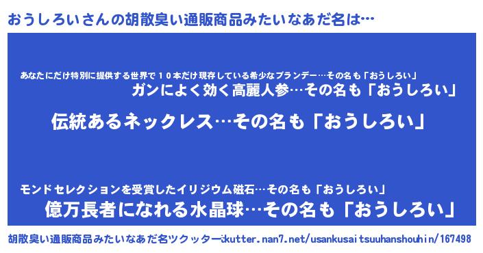| 意味不明あだ名 | 『とにかく怪しいおうしろい』 |