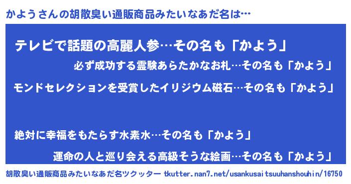 | 意味不明あだ名 | 『眠気覚ましガムかよう味』『自称かよう』 |