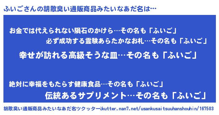 | 男性向けラノベタイトル風あだ名 | 『やはりふいごの青春ラブコメはまちがっている 』 |