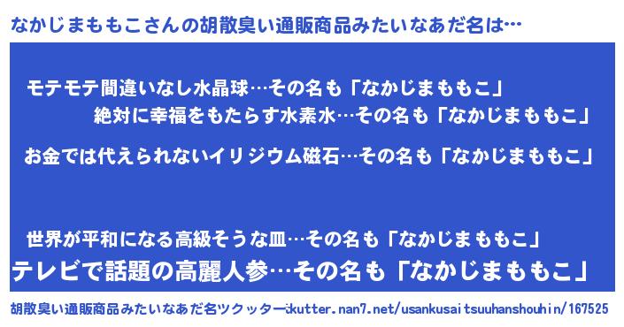| ヘコむあだ名 | 『なかにゅー』『なかじまももこ(笑)』 |