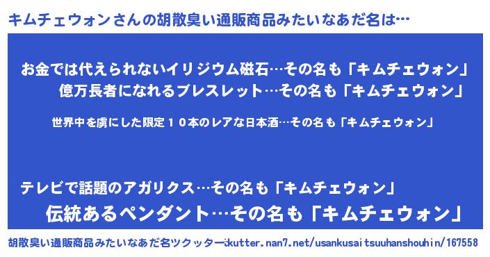 | 欧米人風あだ名 | 『ダレノガレキムチェウォン』 |