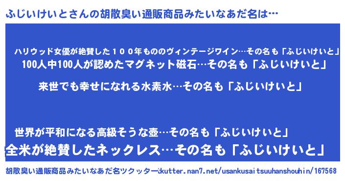 | ヘコむあだ名 | 『ふじいけいと(震え声)』『ふじ太郎』 |