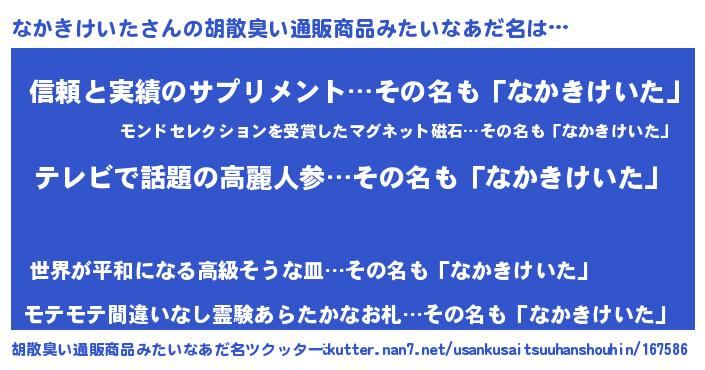 | 意味不明あだ名 | 『自称なかきけいた』 |