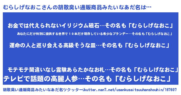 | 欧米人風あだ名 | 『むらしげなおこクリステル』 |