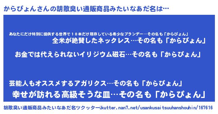 | ヒーロー風カッコイイあだ名 | 『慈愛の使者からぴょん』『仮面カラダー』 |