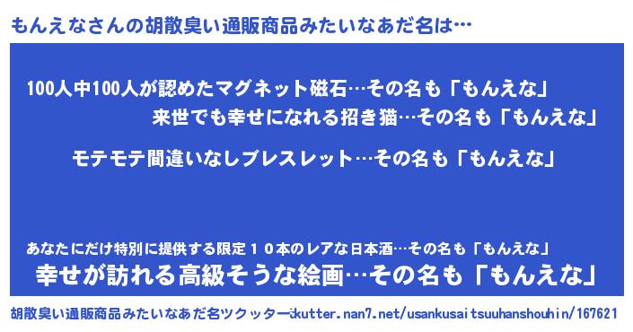 | 欧米人風あだ名 | 『マイケルもんえな』『ダニエルもんえな』 |