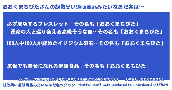| 欧米人風あだ名 | 『ダニエルおおくまちびた』 |