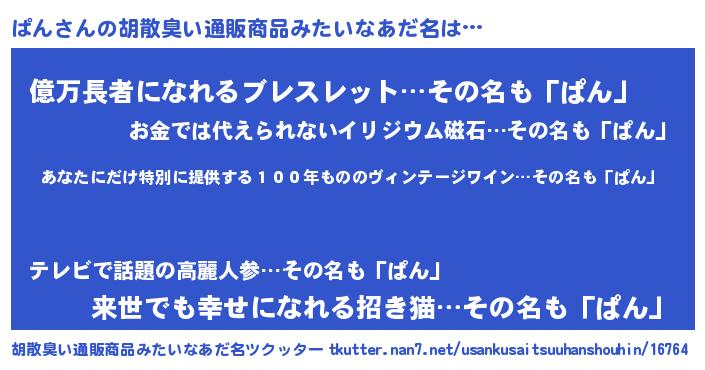 | ヘコむあだ名 | 『ぱんふぇ~』『ぱん(爆)』 |