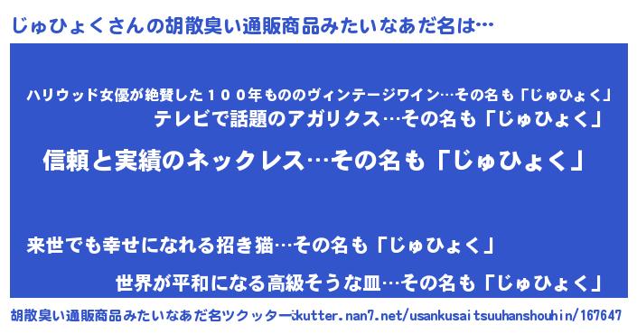 | 女子向けラノベタイトル風あだ名 | 『じゅひょくは平凡を望む』 |
