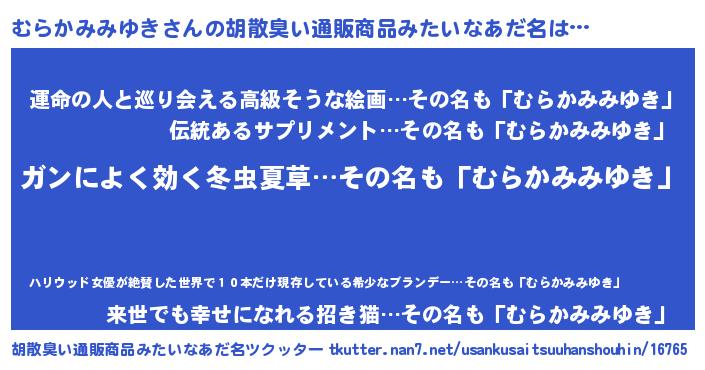 | 意味不明あだ名 | 『自称むらかみみゆき』 |