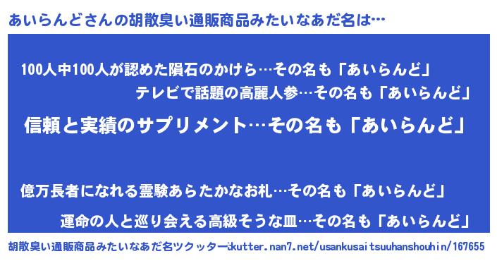 ヘコむあだ名 | 『あいを』『なまこ酢』『あいふぇ~』 |
