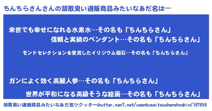 | ヒーロー風カッコイイあだ名 | 『天空の使者ちんちらさん』 |
