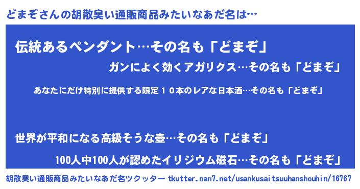 | 意味不明あだ名 | 『住所不定無職どまぞ(53歳)』『自称どまぞ』 |