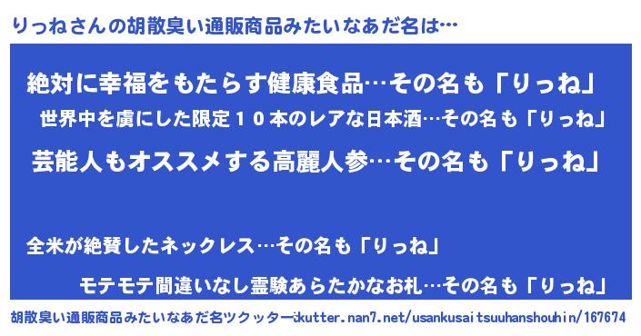| ヘコむあだ名 | 『りっね(小並感)』『りっふぇ~』 |