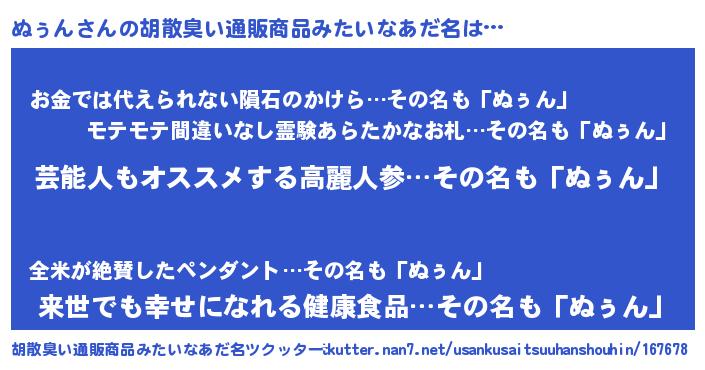 | ヘコむあだ名 | 『ぬぅん(笑)』『ぬぅっふぃ~』 |