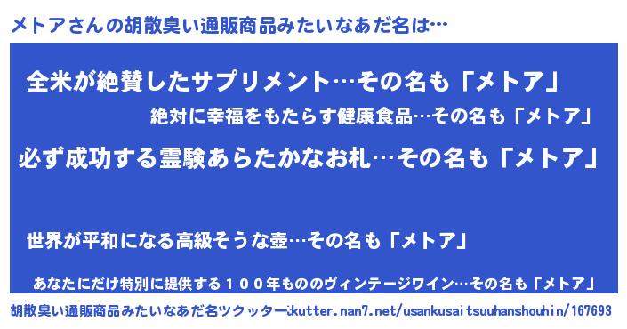 | ヘコむあだ名 | 『メトっふぃ~』『メトお』『牛乳』 |
